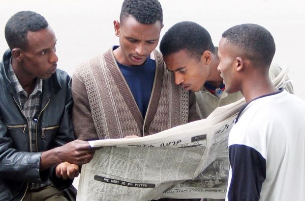 Photo above: A group of men scrutinize a newspaper in Addis Ababa,